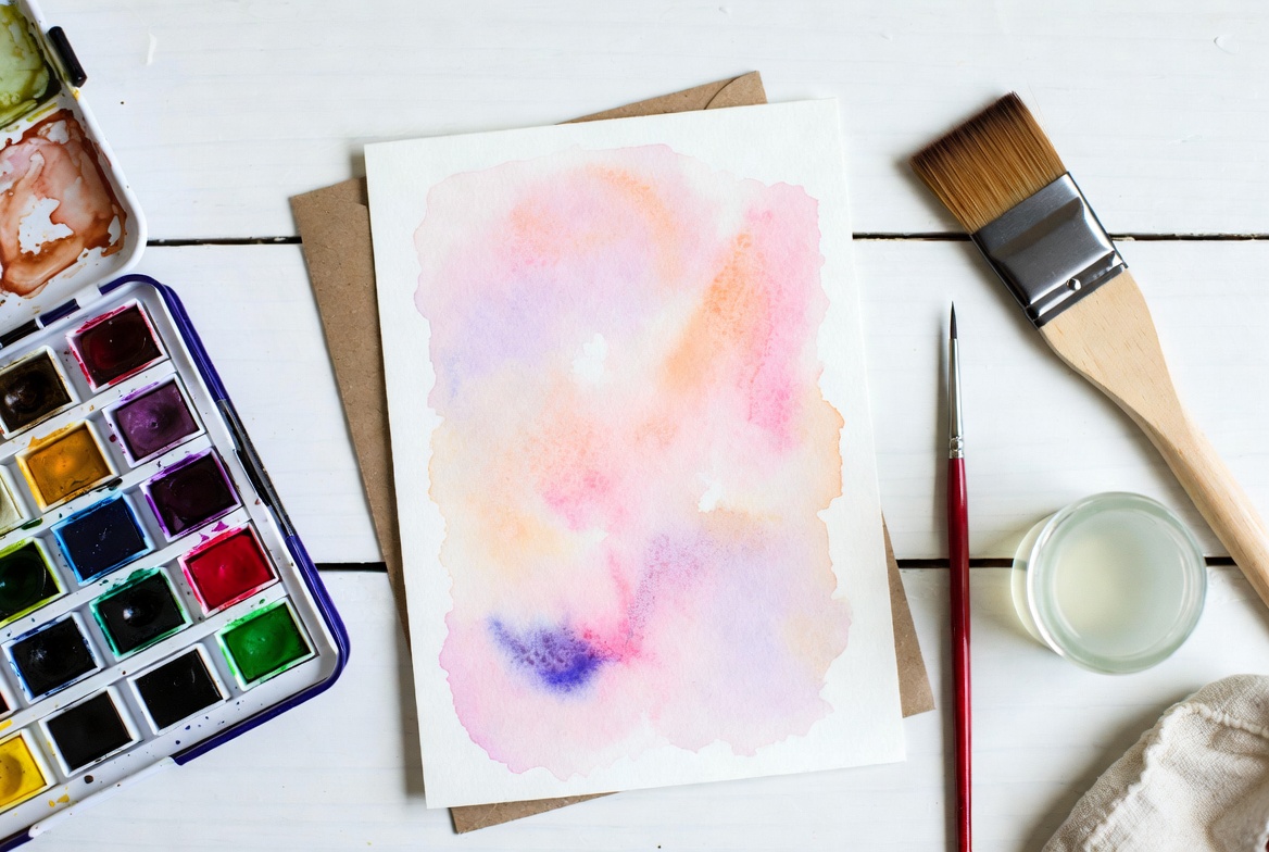 Werk met natte verf op nat papier voor zachte overgangen, en met droog penseel op droog papier voor scherpere lijnen. Experimenteer gerust want bij waterverf zijn de mooiste resultaten vaak de onverwachte. En onthoud: elke kaart die je met je eigen handen maakt, is al bijzonder.
